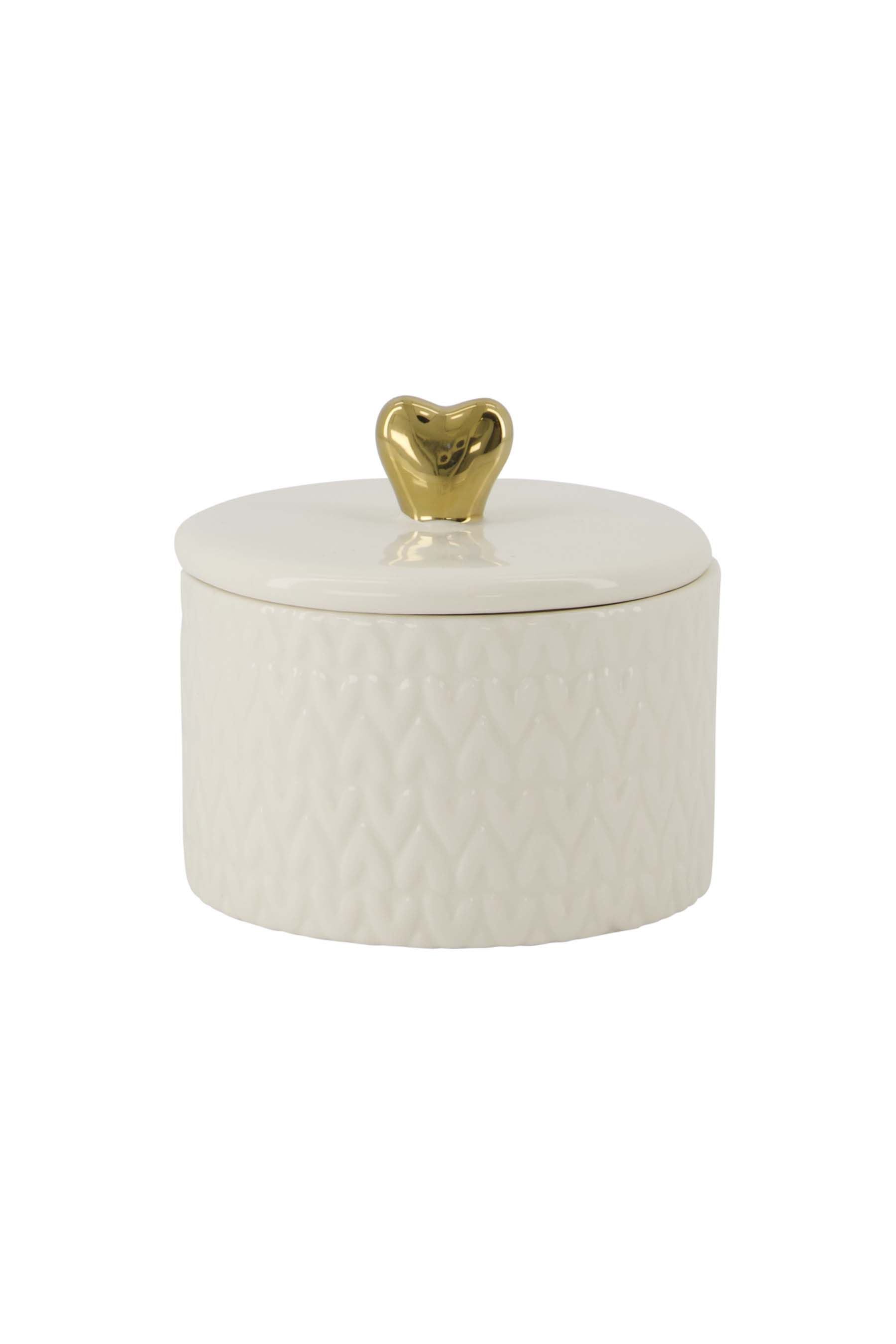 Zusss Home geurkaars keramiek met deksel hartje S wit/goud